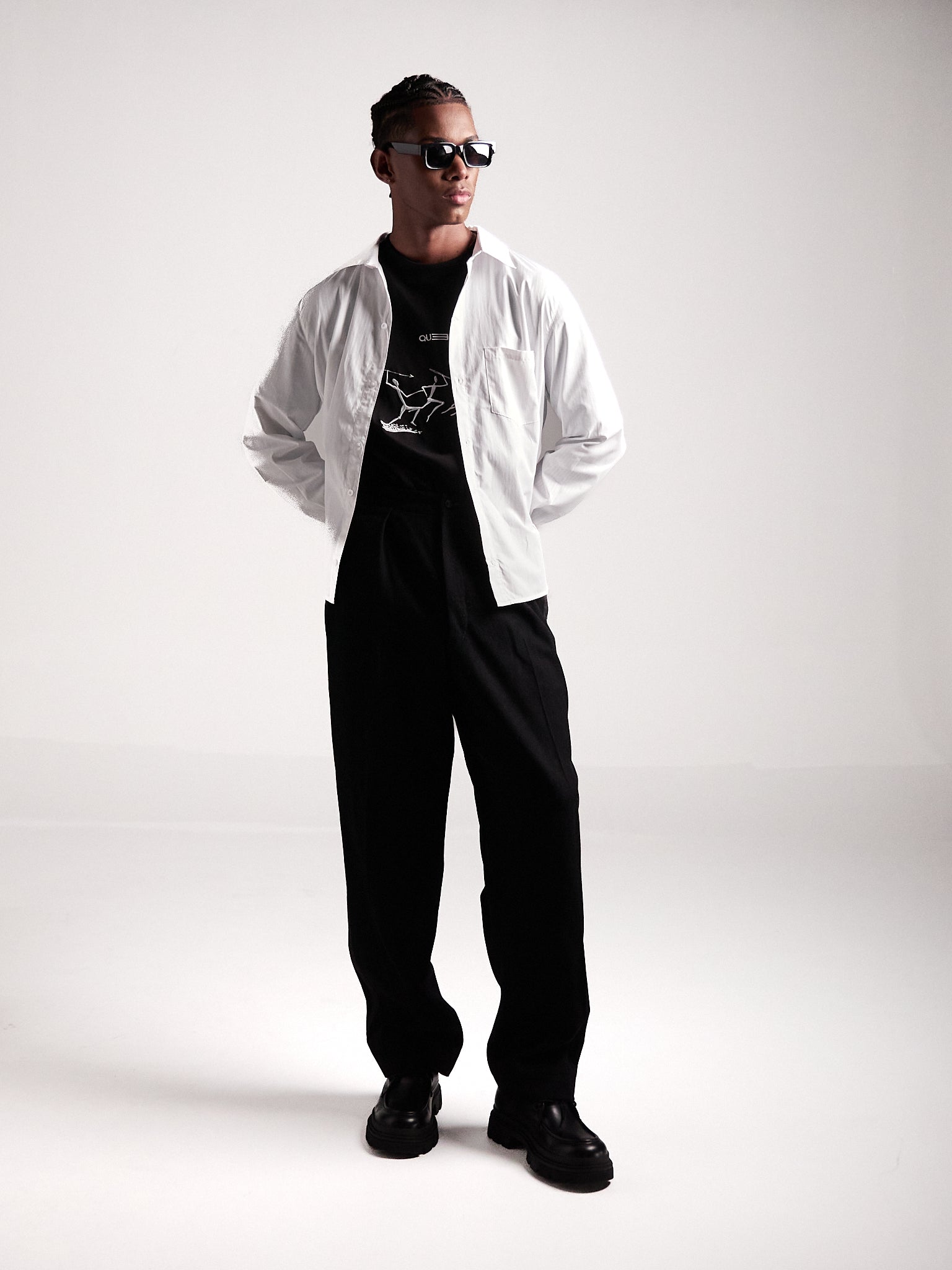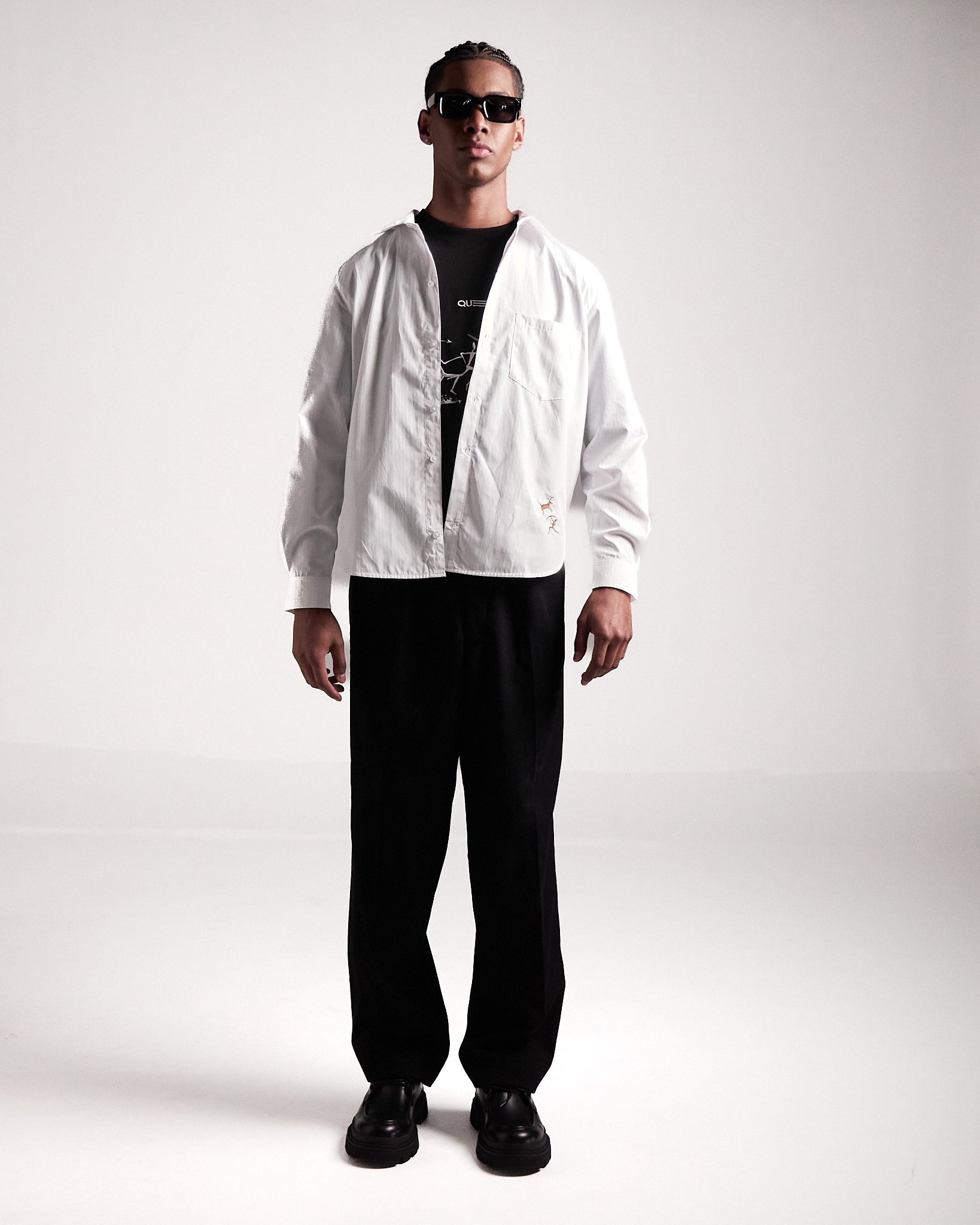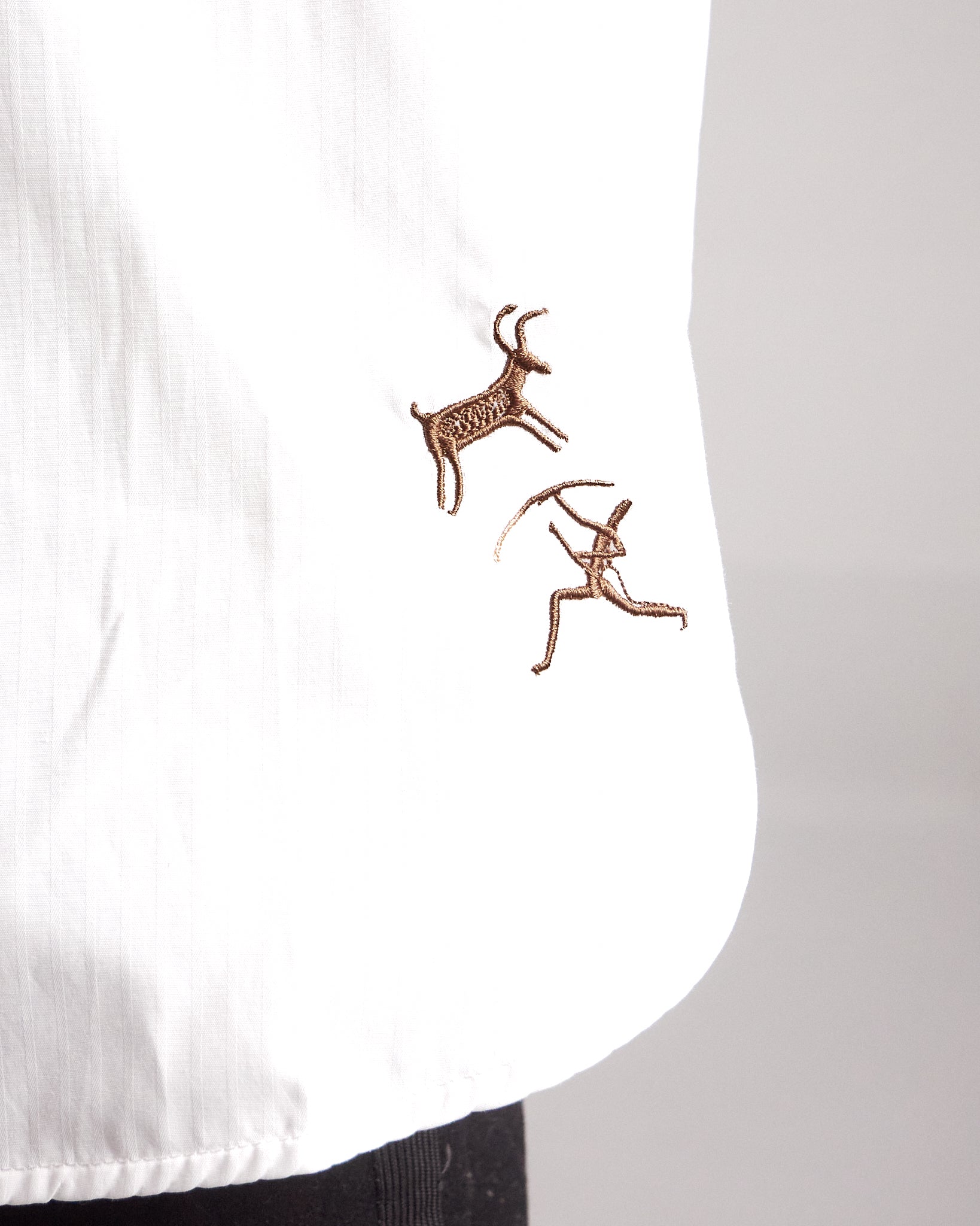 Camisa en algodón 100%, con bordados sutiles al frente y en la espalda. Una pieza refinada que lleva los motivos rupestres hacia una estética sobria, elegante y contemporánea.