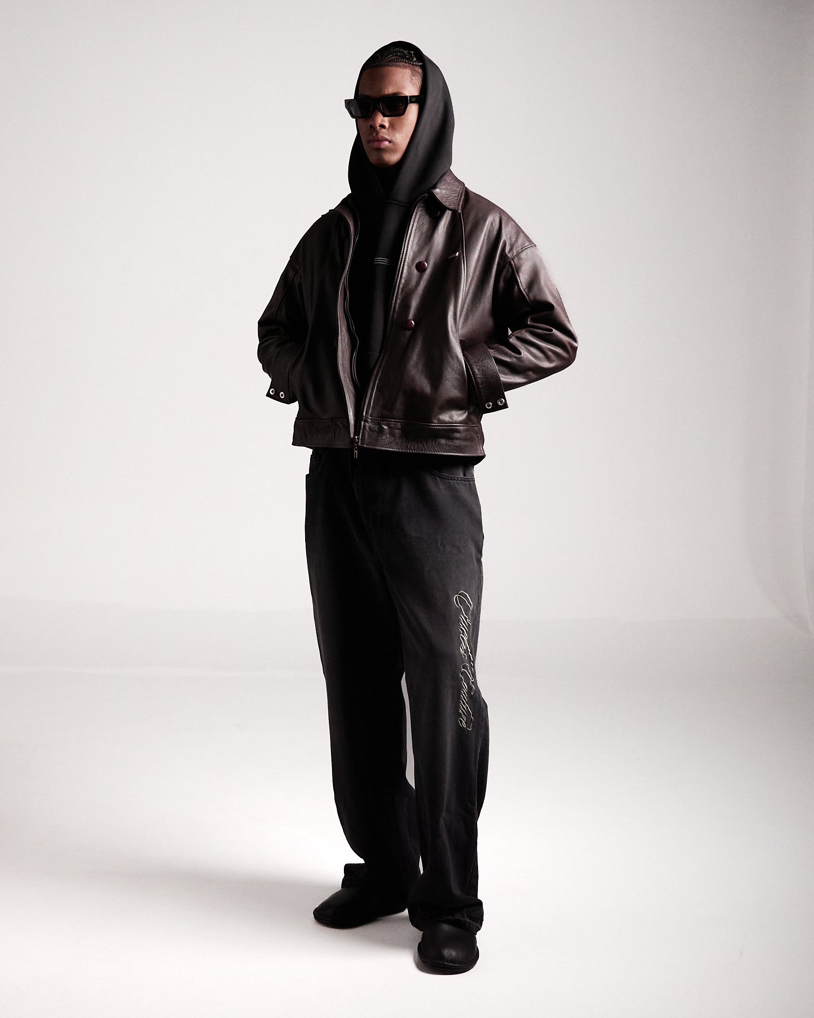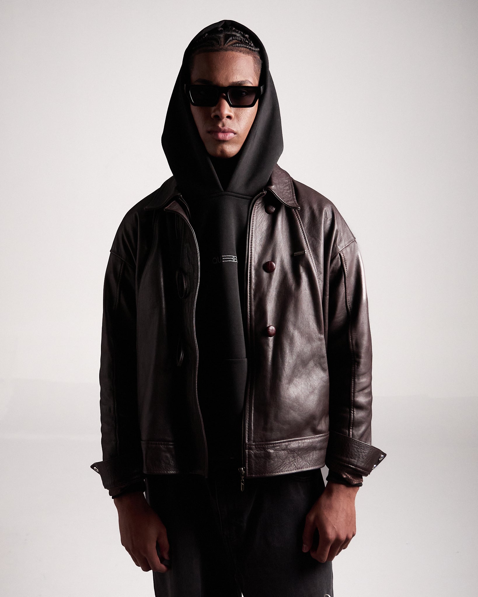 Chaqueta en cuero 100% calibre 9, robusta y elegante. Combina botones frontales con cremallera para un estilo adaptable, entre lo casual y lo sofisticado. El bordado posterior y los broches en las mangas contramarcados con el isotipo refuerzan su carácter único.